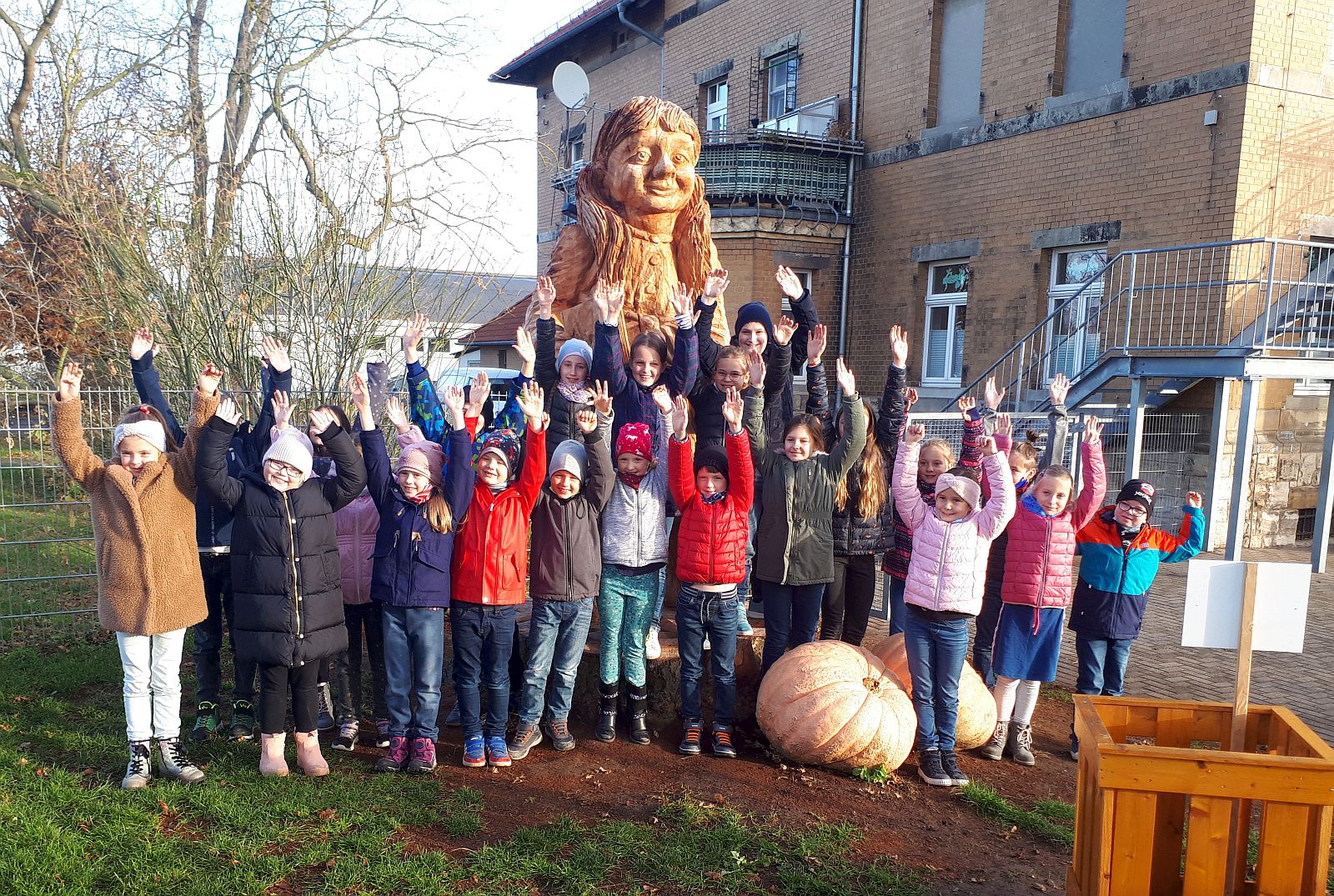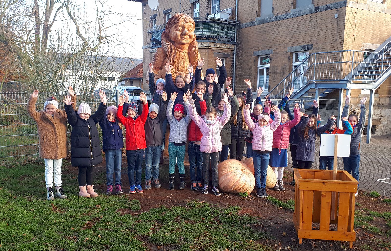 mit einigen Schülerinnen und Schülern bildlich fest. Sie entstand aus der alten